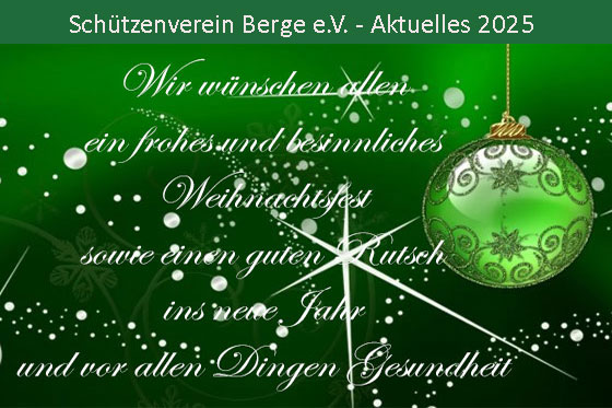 Der Vorstand des Schützenvereins Berge e.V. wünscht allen ein frohes und besinnliches Weihnachtsfest sowie einen guten Rutsch ins neue Jahr und in der heutigen Zeit …