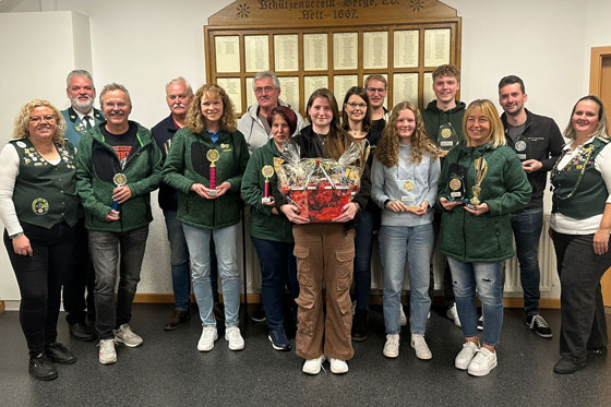 Derzeit ist Carina Brunneke die Vorsitzende der Damenschießgruppe. Sie organisierte mit dem Vorstandsteam das viertägige Pokalschießen zum Jubiläum auf der Wilhelmshöhe. 25 Vereine mit 30 Teams waren dabei.
